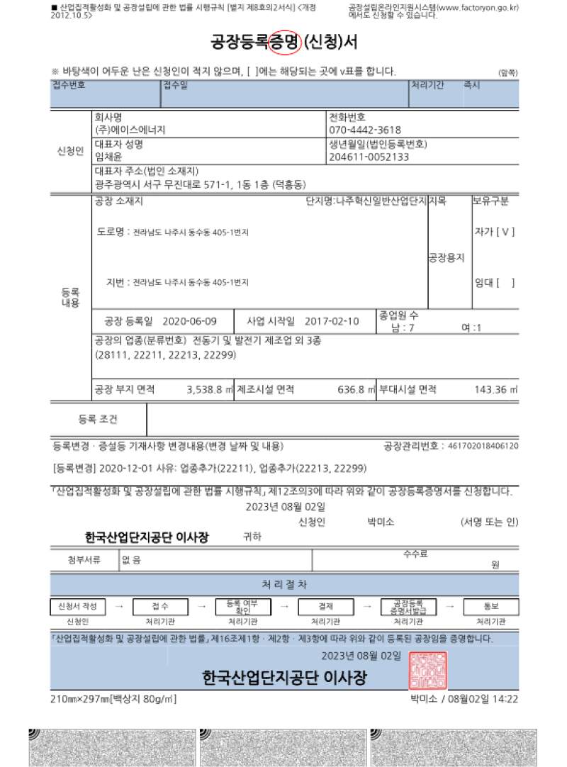 공장 : 전라남도 나주시 혁신신단3길 121 | 전화 : 070-4442-3168 | 팩스 : 062-375-2552