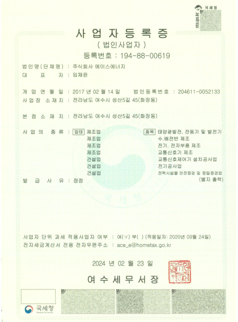 Copyright ⓒ 2024 주식회사 에이스에너지 All Rights Reserved.