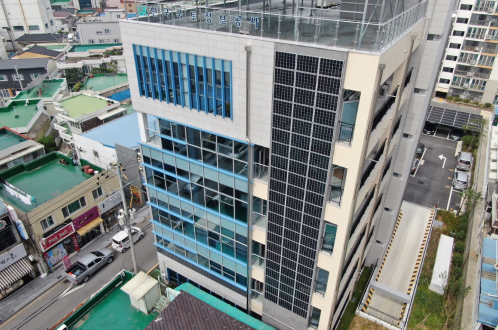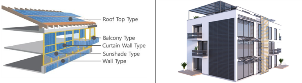 건물을 꾸미면서 건물에 필요한 전기를 생산하는 태양광발전 시설을 구축하는 방식을 의미합니다.